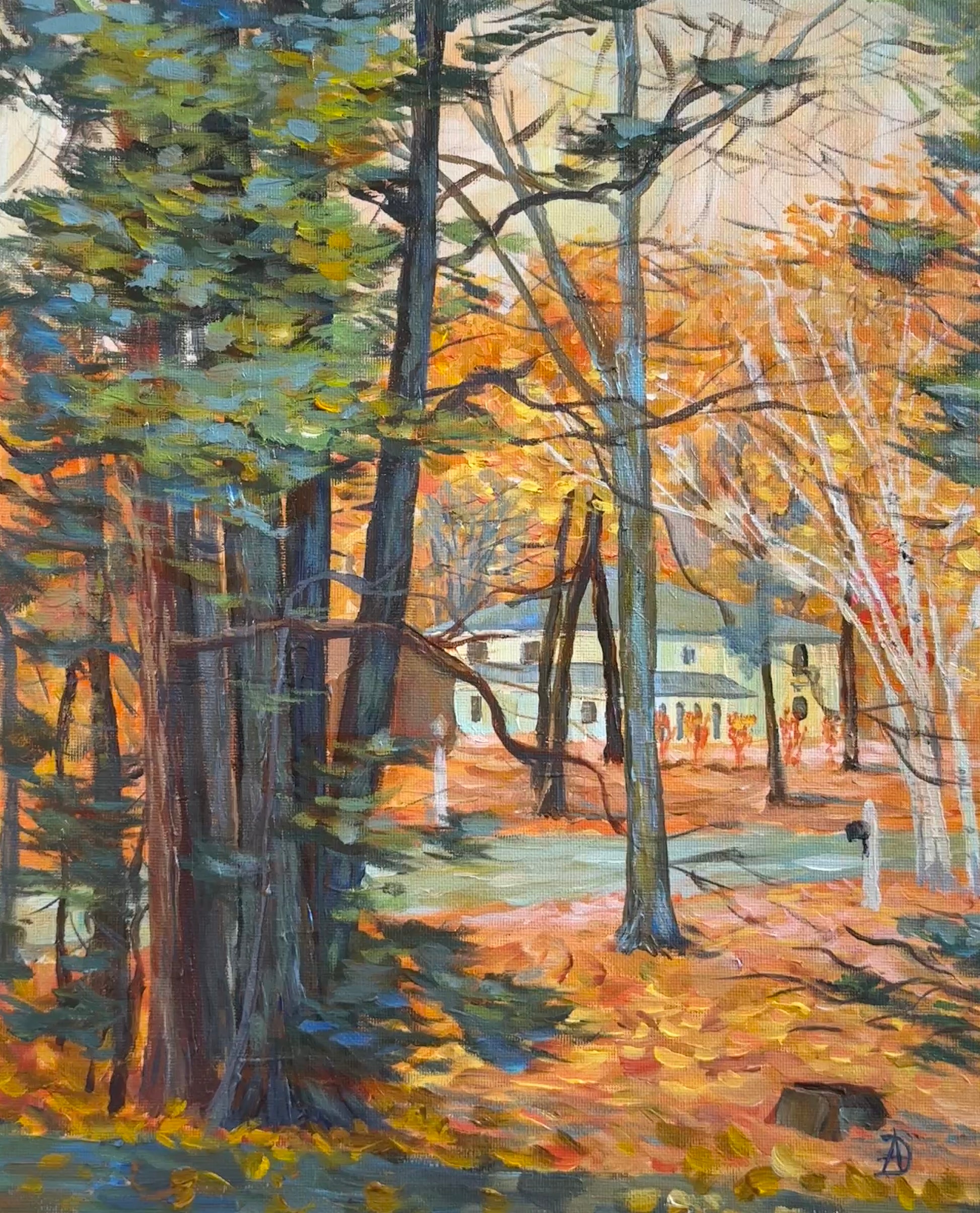 "Autumn in the Neighborhood" - Original Acrylic Painting on Canvas Panel